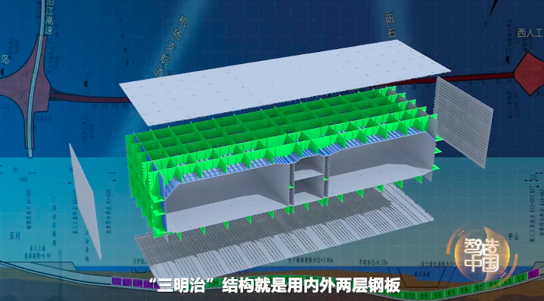 顾名思义,“三明治”结构就是用内外两层钢板造出巨型钢壳,然后在两层钢板的隔舱之间进行混凝土浇筑。