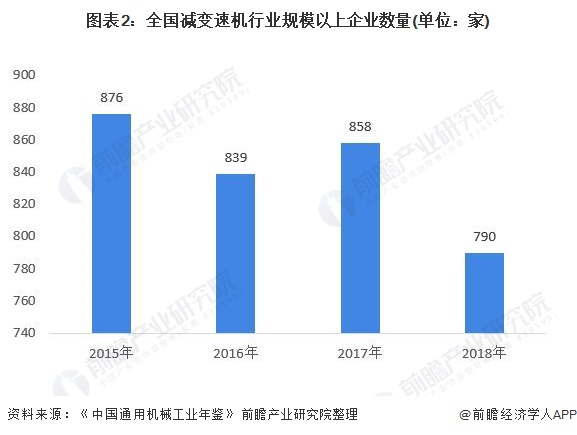 注:《中国通用机械工业年鉴》关于减变速机行业规模以上企业数量数据暂更新至2018年。